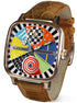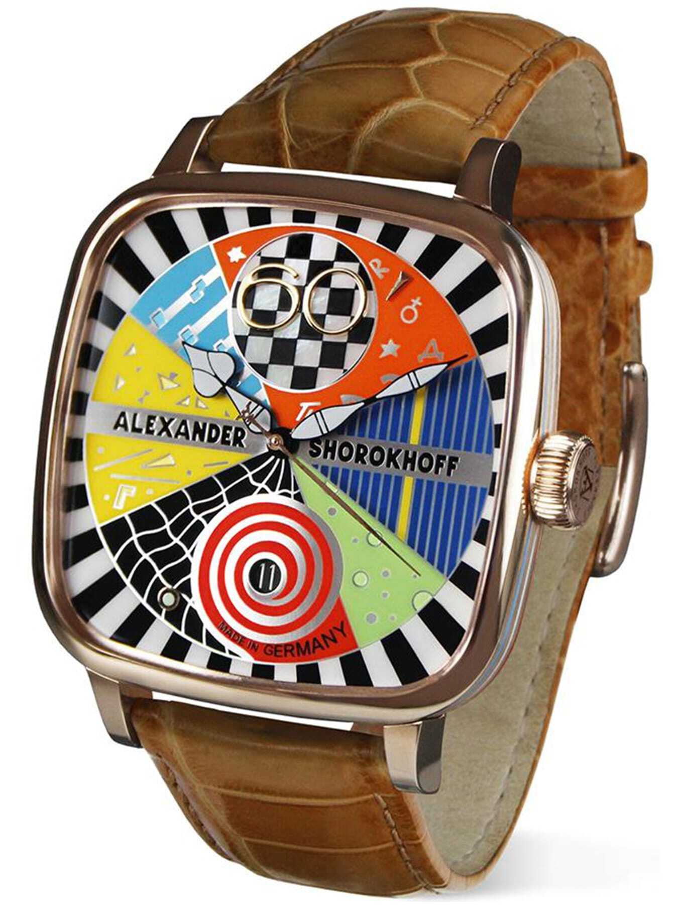 Das emaillierte Zifferblatt ist ein farbenfrohes Kunstwerk im Avantgardestil. Verschiedene leuchtende Elemente bilden eine lebendige Komposition, ergänzt durch ein edles Perlmutt-Detail bei 12 Uhr, das dem Design zusätzliche Tiefe und Eleganz verleiht.