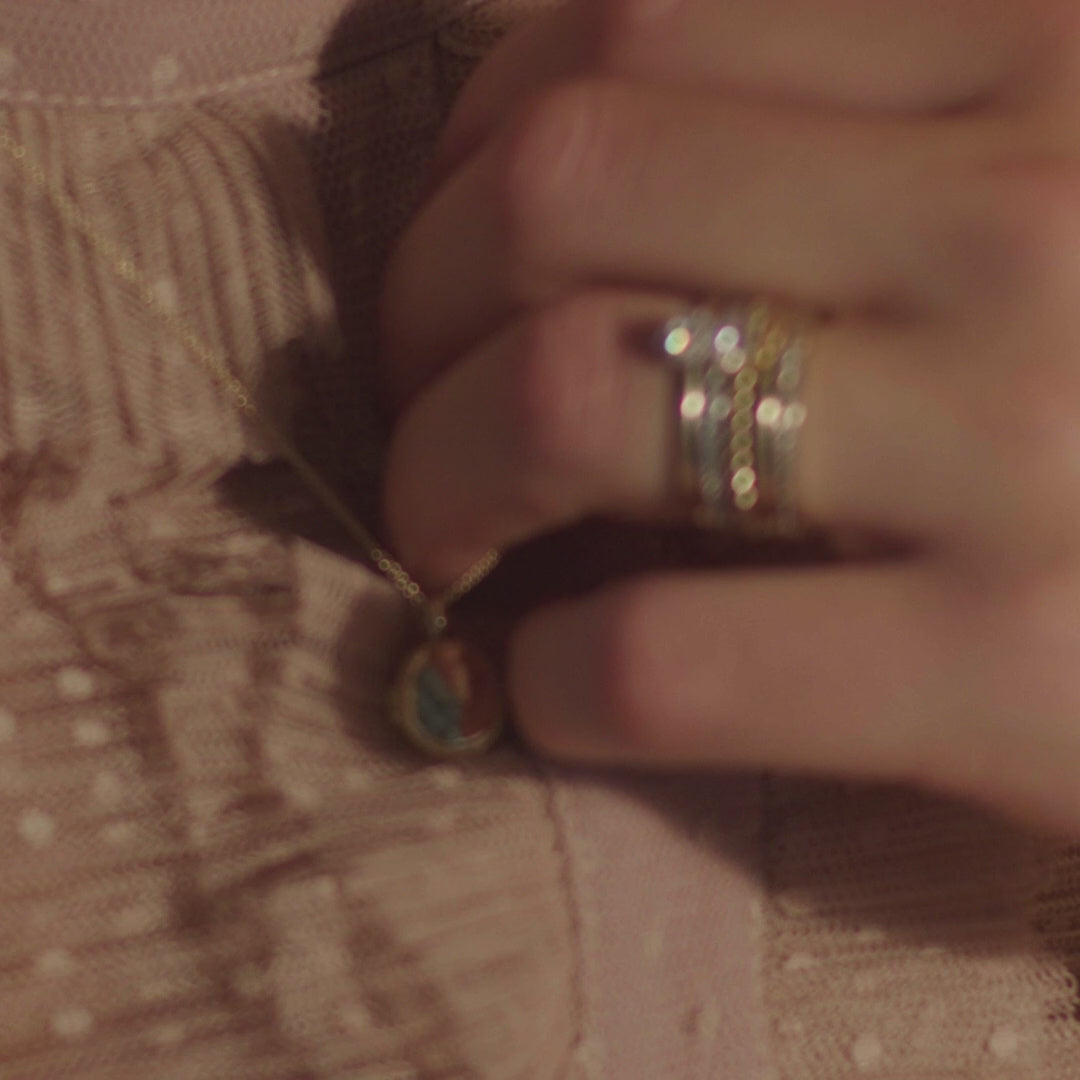 Dieses klassische, ovale Medaillon aus 14 Karat Gelbgold wird mit einem dezenten Kordeldekor gefertigt. An der Innenseite befindet sich ein silbernes Plättchen, auf das ein Name und ein Datum eingraviert werden können. Es ist 11,8 mm lang und 11,5 mm breit.
